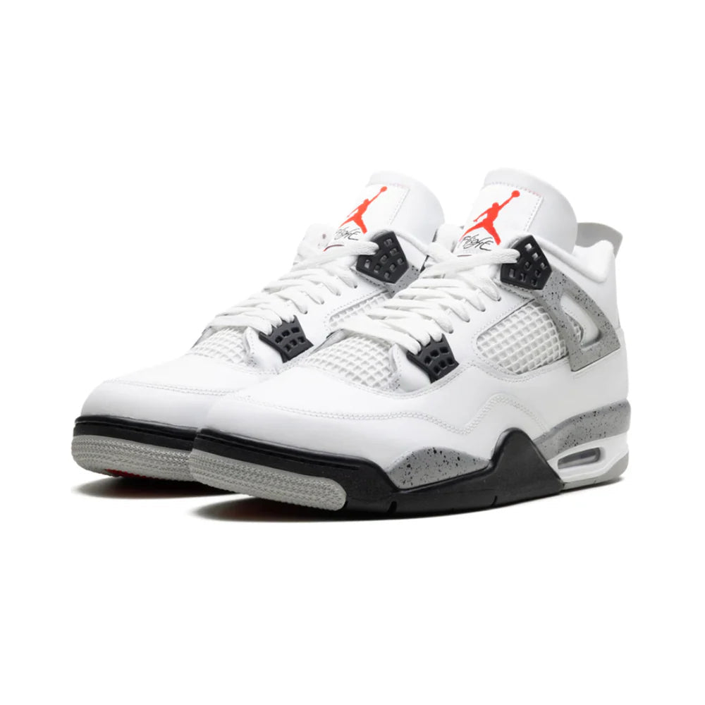 Jordan 4 Retro White Cement 2025 released on May 24 2025 for 225 in summit white fire red tech grey and black colorway. This pair brings back the legendary 1989 design with a crisp white leather upper cement grey speckles on the midsole and wings black mesh panels and fire red accents that honor classic Jordan DNA.