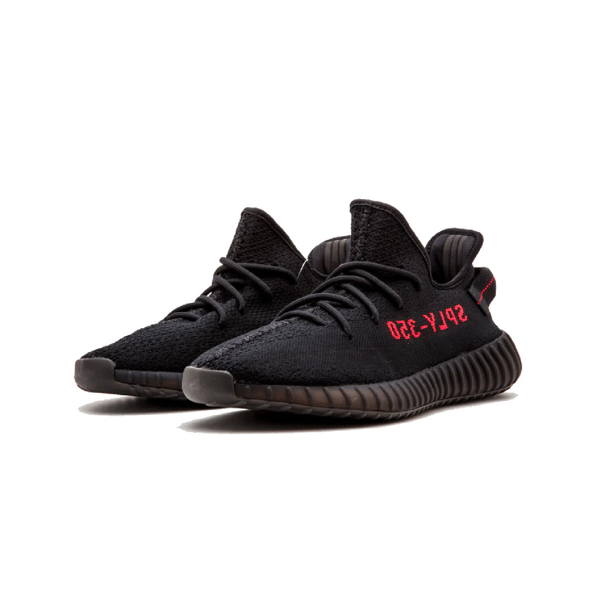 The adidas Yeezy Boost 350 V2 Black Red is a classic colorway that helped define the silhouette’s early success. It features a black Primeknit upper, a matching ribbed Boost midsole, and the signature red “SPLY-350” branding on the side.