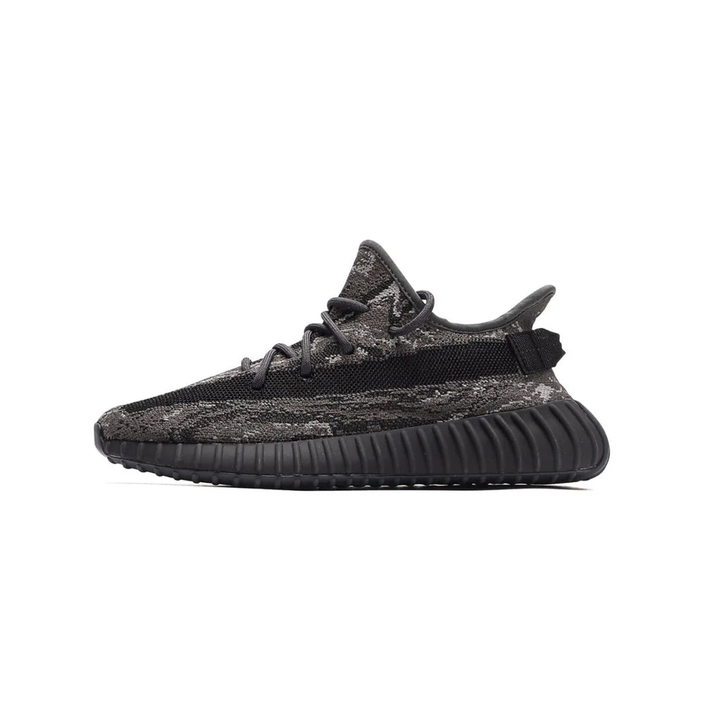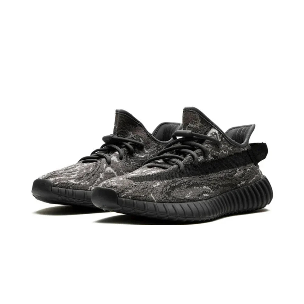 The adidas Yeezy Boost 350 V2 MX Dark Salt features a marbled mix of grey and black on the Primeknit upper, paired with a signature side stripe and Boost-cushioned midsole for everyday comfort.