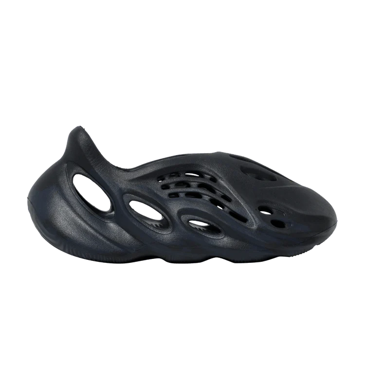 The adidas Yeezy Foam RNNR Mineral Blue features a deep navy one-piece foam construction crafted from a blend of EVA and harvested algae. Its sculptural shape is enhanced with oval cut-outs for breathability and a futuristic edge, making it ideal for both style and comfort.