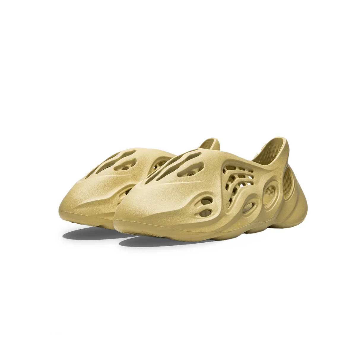 The adidas Yeezy Foam RNNR Sulfur blends futuristic design with sustainable innovation. Crafted from a mix of EVA foam and recycled materials, it features a sculptural silhouette with oval cutouts for breathability and visual impact. The cushioned footbed adds support, making it ideal for all-day wear.